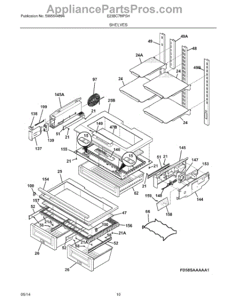 This slide crisper cover is the glass shelf that sits above the refrigerator crisper drawer, giving a smooth sliding surface and supporting produce while keeping the crisper compartment sealed from the rest of the fridge. What it does