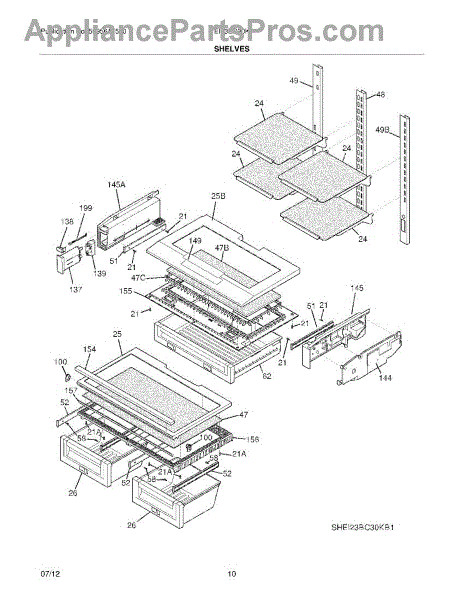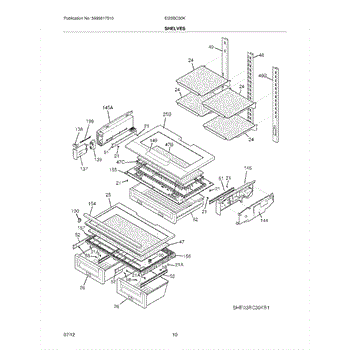 Supports the crisper shelf glass and forms the top of humidity drawers. Replace if cracked, warped, or broken from heavy loads or impact.