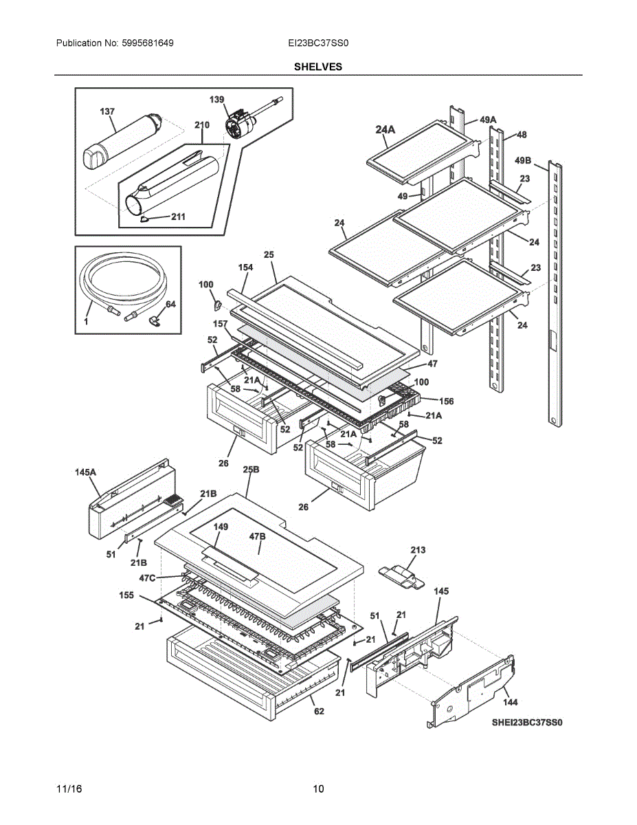Supports the crisper shelf glass and forms the top of humidity drawers. Replace if cracked, warped, or broken from heavy loads or impact.