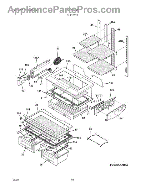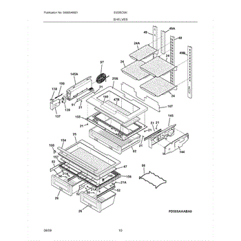 Supports the crisper shelf glass and forms the top of humidity drawers. Replace if cracked, warped, or broken from heavy loads or impact.