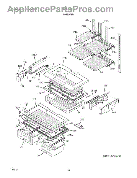 This slide crisper cover is the glass shelf that sits above the refrigerator crisper drawer, giving a smooth sliding surface and supporting produce while keeping the crisper compartment sealed from the rest of the fridge. What it does