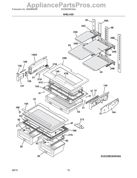 Supports the crisper shelf glass and forms the top of humidity drawers. Replace if cracked, warped, or broken from heavy loads or impact.