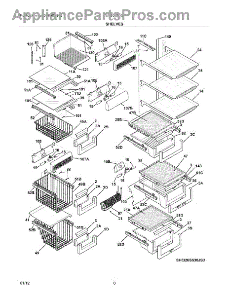 Parts for Electrolux EI23CS55GW3: 09 - Shelves Parts