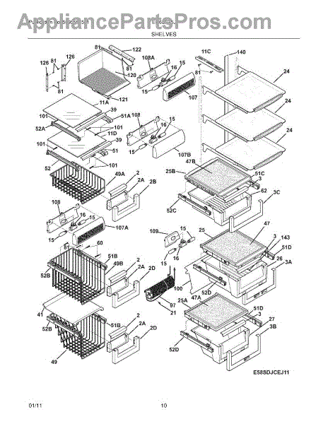 Over time, the glass shelf can become damaged due to heavy items being placed on it, accidental impacts, or thermal stress from temperature changes. Replacing a damaged shelf ensures safe and effective storage inside the refrigerator.