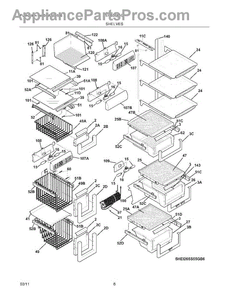 Parts for Electrolux EI26SS55GB6: 09 - Shelves Parts