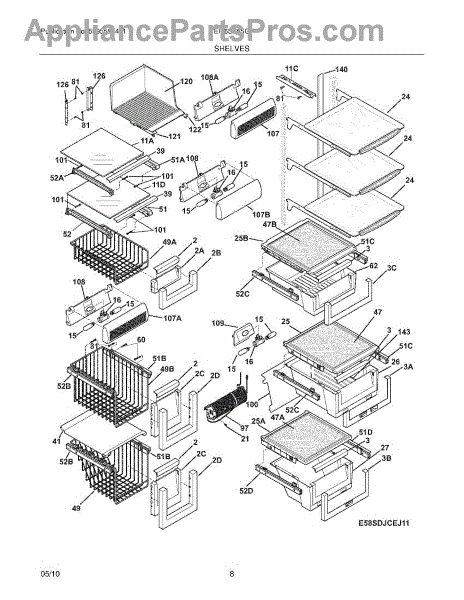 Parts for Electrolux EI26SS55GW5: 09 - Shelves Parts
