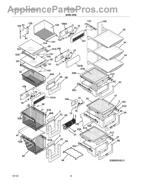 Over time, the glass shelf can become damaged due to heavy items being placed on it, accidental impacts, or thermal stress from temperature changes. Replacing a damaged shelf ensures safe and effective storage inside the refrigerator.