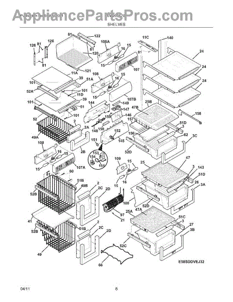 Over time, the glass shelf can become damaged due to heavy items being placed on it, accidental impacts, or thermal stress from temperature changes. Replacing a damaged shelf ensures safe and effective storage inside the refrigerator.