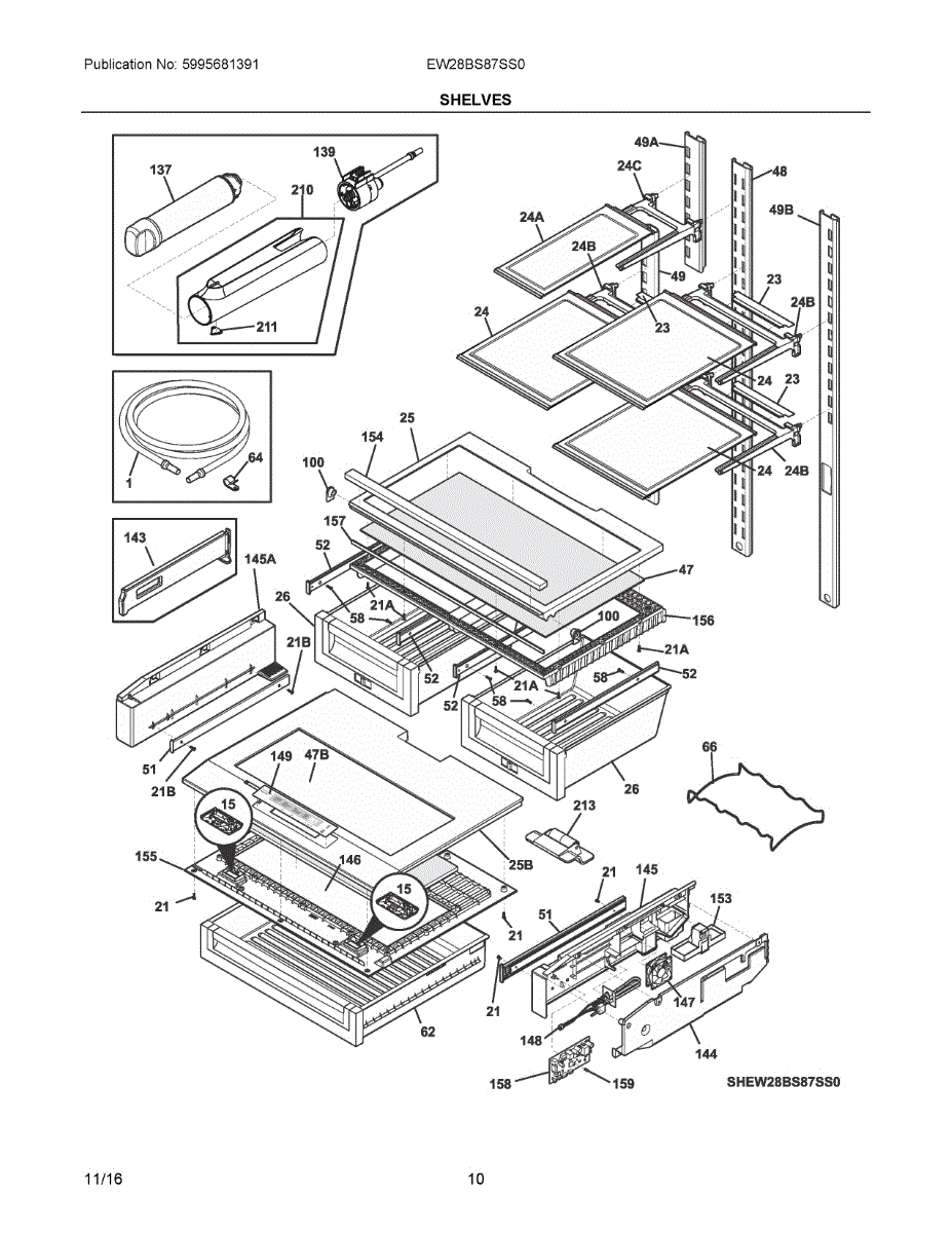 Replacement shelf assembly for bottom-mount refrigerators. Installs inside fresh food compartment. Order when original shelf is cracked, broken, or missing.