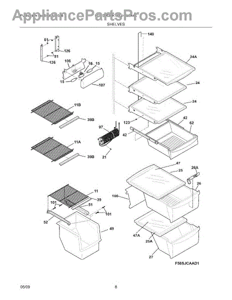 Parts for Frigidaire BGHS2634KE0: 09 - Shelves Parts
