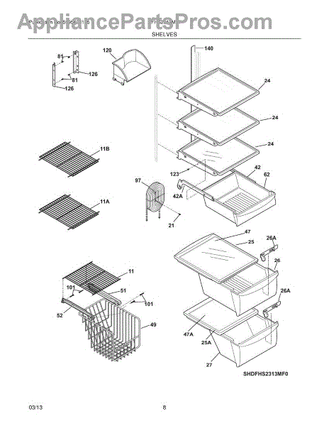Replacement shelf assembly for the freezer compartment restores a sturdy, level surface for food storage and organization. Replace a damaged or missing shelf to recover capacity, maintain proper spacing, and keep items from shifting.