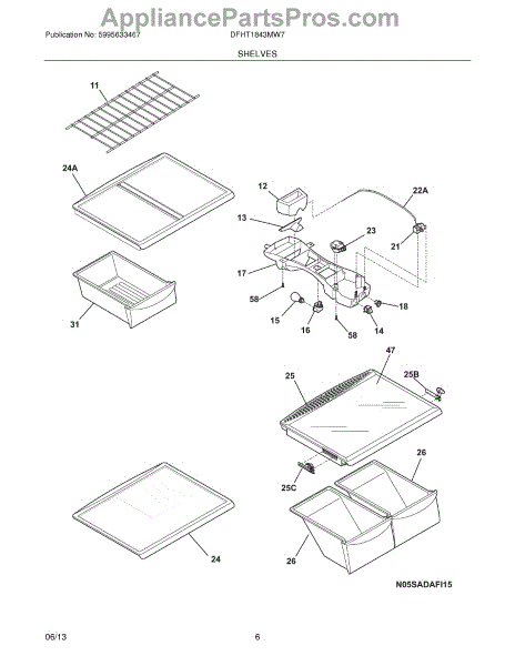 Parts for Frigidaire DFHT1843MW7: 07 - Shelves Parts