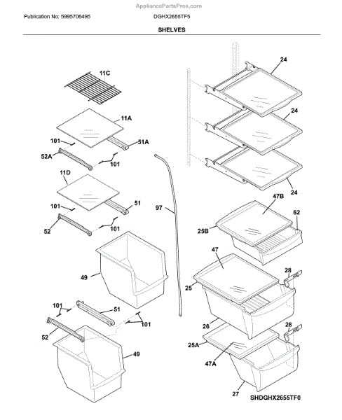 Parts for Frigidaire DGHX2655TF5: Shelves Parts