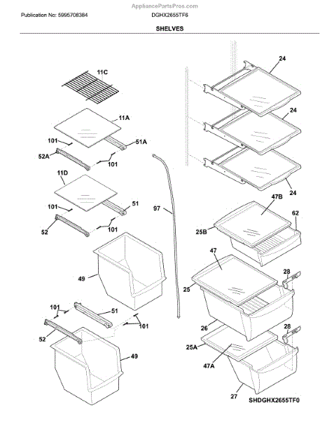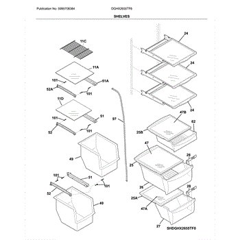Parts for Frigidaire DGHX2655TF6: Shelves Parts