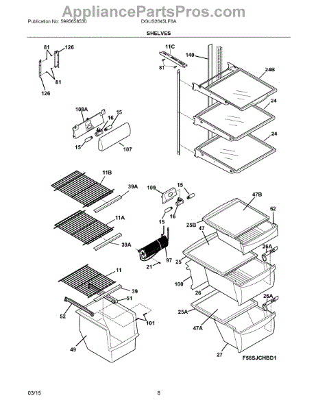 Parts for Frigidaire DGUS2645LF6A: 05 - Shelves Parts