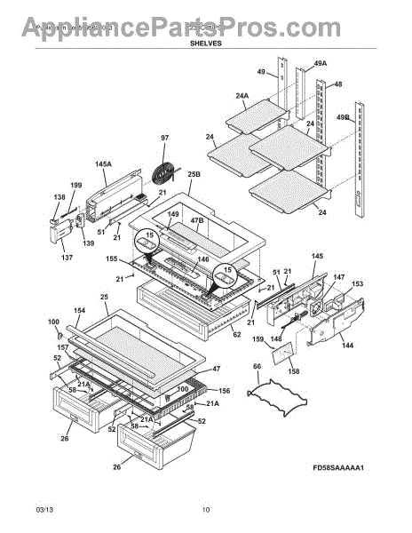 This slide crisper cover is the glass shelf that sits above the refrigerator crisper drawer, giving a smooth sliding surface and supporting produce while keeping the crisper compartment sealed from the rest of the fridge. What it does