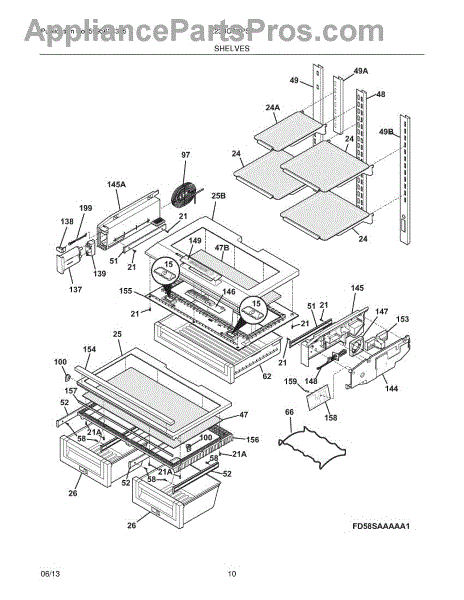 This slide crisper cover is the glass shelf that sits above the refrigerator crisper drawer, giving a smooth sliding surface and supporting produce while keeping the crisper compartment sealed from the rest of the fridge. What it does