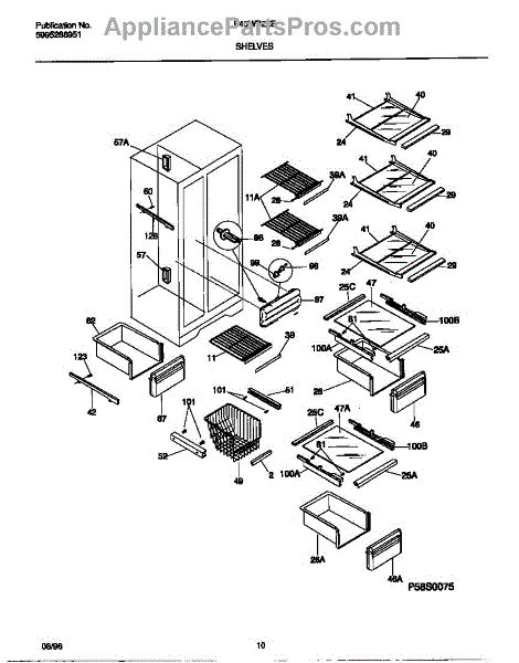 Parts for Frigidaire F45WP22EW0: 05 - Shelves Parts