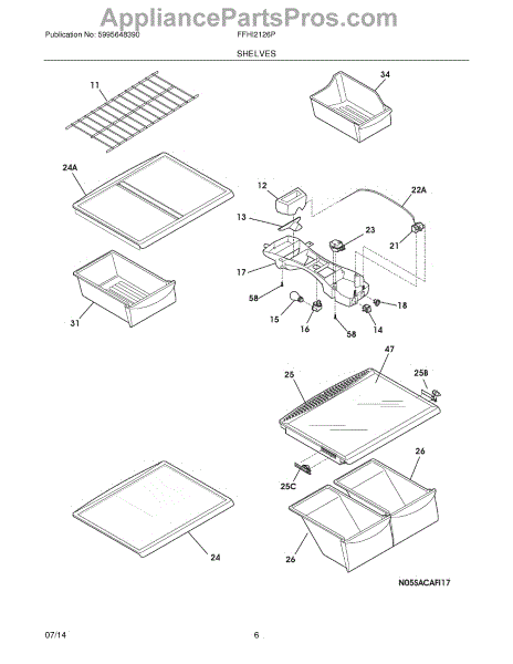 The Crisper Pan Cover is an OEM part for Frigidaire refrigerators. It serves as the shelf that sits above the crisper drawers and supports various items while providing a lid to help maintain the humidity levels necessary to keep fruits and vegetables fresh longer. This cover typically is only the frame and does not include the glass.