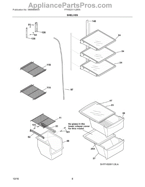 This refrigerator shelf restores a flat, sturdy surface for storing food and containers. Replace a broken or missing shelf to regain capacity, keep items organized, and help prevent spills inside your appliance.