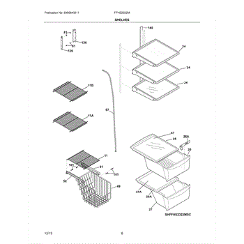 Replacement shelf assembly for the freezer compartment restores a sturdy, level surface for food storage and organization. Replace a damaged or missing shelf to recover capacity, maintain proper spacing, and keep items from shifting.