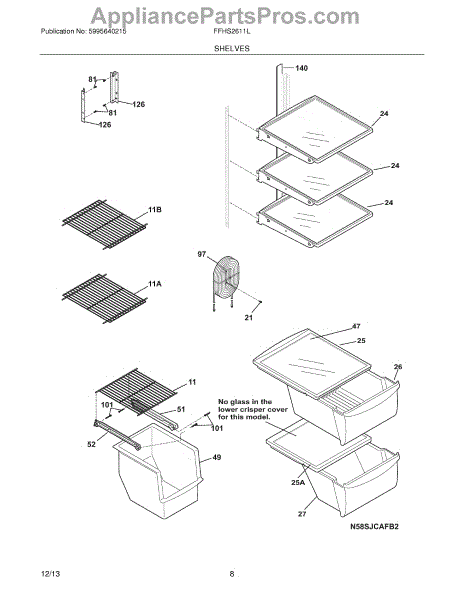 *GLASS NOT INCLUDED, GLASS IS PART # 240350603 / AP2115927*