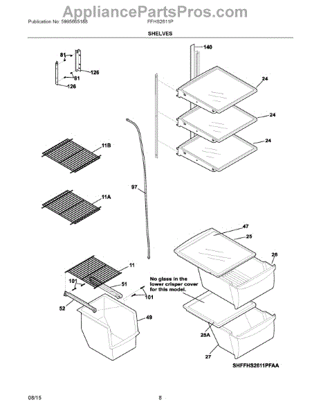 Parts for Frigidaire FFHS2611PFDA: 05 - Shelves Parts