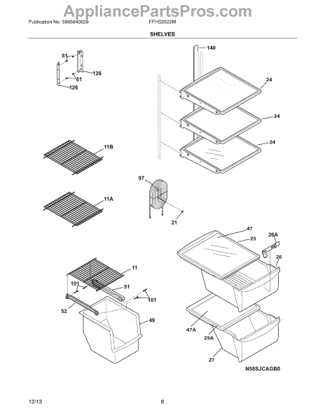 Parts for Frigidaire FFHS2622MWF: 09 - Shelves Parts