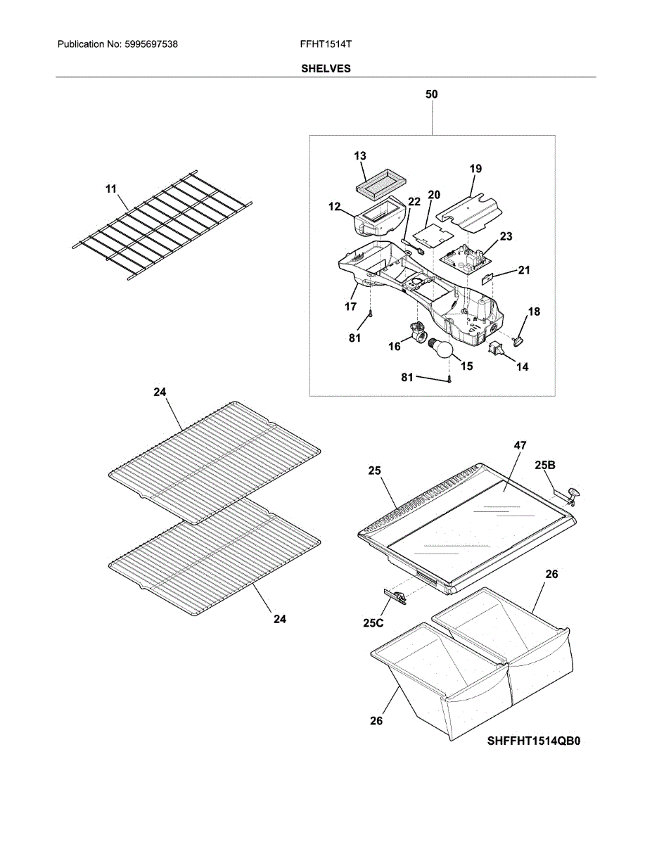 The Refrigerator Shelf is an OEM part for Frigidaire refrigerators. This shelf provides sturdy storage space within the refrigerator, helping to organize food items and maximize the use of available space. The shelf measures approximately 24 inches in width and 16.25 inches in length.