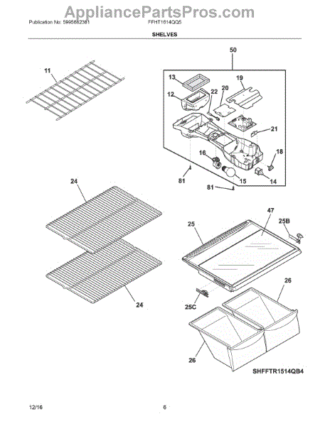 The Refrigerator Shelf is an OEM part for Frigidaire refrigerators. This shelf provides sturdy storage space within the refrigerator, helping to organize food items and maximize the use of available space. The shelf measures approximately 24 inches in width and 16.25 inches in length.