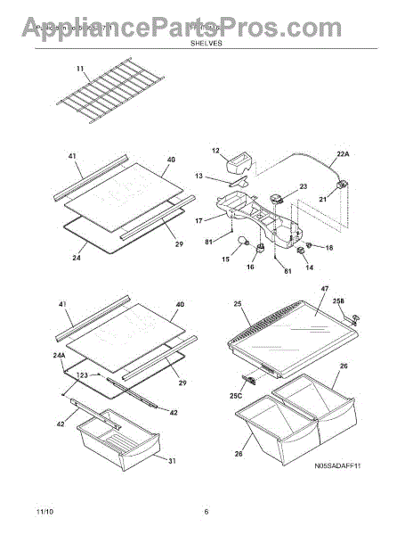 The Crisper Pan Cover is an OEM part for Frigidaire refrigerators. It serves as the shelf that sits above the crisper drawers and supports various items while providing a lid to help maintain the humidity levels necessary to keep fruits and vegetables fresh longer. This cover typically is only the frame and does not include the glass.
