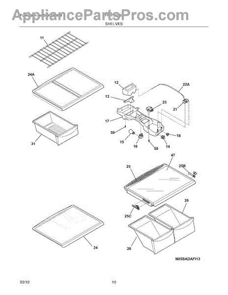The Crisper Pan Cover is an OEM part for Frigidaire refrigerators. It serves as the shelf that sits above the crisper drawers and supports various items while providing a lid to help maintain the humidity levels necessary to keep fruits and vegetables fresh longer. This cover typically is only the frame and does not include the glass.