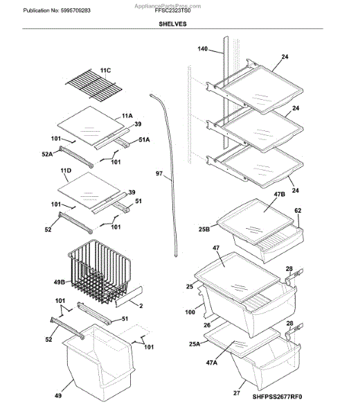 The Shelf Assembly is an OEM part for Frigidaire refrigerators. It is a complete shelf that provides storage space and organization in your refrigerator.