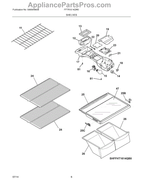 The Refrigerator Shelf is an OEM part for Frigidaire refrigerators. This shelf provides sturdy storage space within the refrigerator, helping to organize food items and maximize the use of available space. The shelf measures approximately 24 inches in width and 16.25 inches in length.