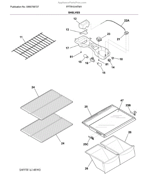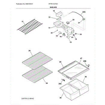 The Refrigerator Shelf is an OEM part for Frigidaire refrigerators. This shelf provides sturdy storage space within the refrigerator, helping to organize food items and maximize the use of available space. The shelf measures approximately 24 inches in width and 16.25 inches in length.