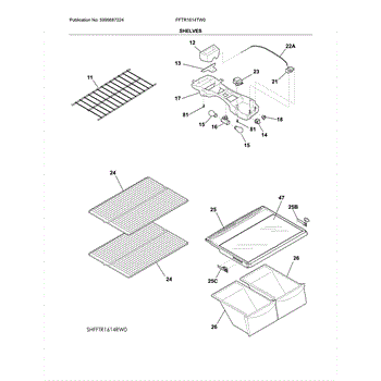 The Refrigerator Shelf is an OEM part for Frigidaire refrigerators. This shelf provides sturdy storage space within the refrigerator, helping to organize food items and maximize the use of available space. The shelf measures approximately 24 inches in width and 16.25 inches in length.