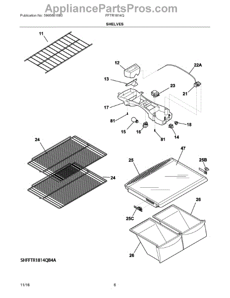 Parts for Frigidaire FFTR1814QS6B: 04 - Shelves Parts