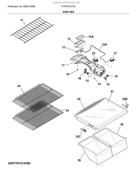 Parts for Frigidaire FFTR1814TS7: Shelves Parts