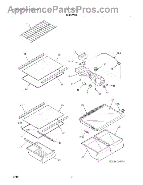 Parts for Frigidaire FFTR1817LW8: 07 - Shelves Parts