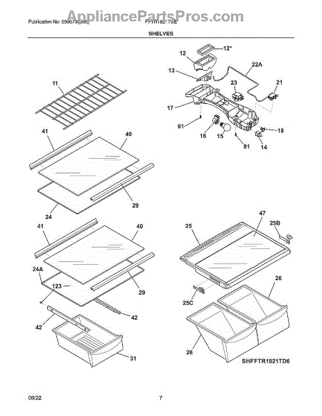 The Freezer Shelf is an OEM replacement part for Frigidaire freezers. It is a sturdy and durable wire or glass shelf designed to provide ample storage space within the freezer compartment, allowing you to organize and easily access frozen items. Measuring approximately 24-1/2" W x 12-1/2" D x 5/32" H, the shelf requires no hardware or tools for installation.