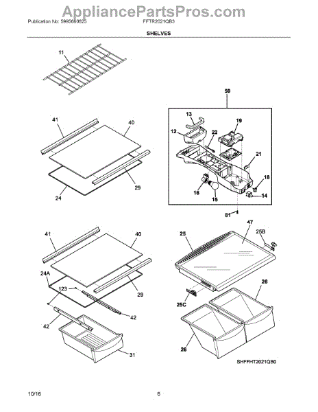 The Crisper Pan Cover is an OEM part for Frigidaire refrigerators. It serves as the shelf that sits above the crisper drawers and supports various items while providing a lid to help maintain the humidity levels necessary to keep fruits and vegetables fresh longer. This cover typically is only the frame and does not include the glass.