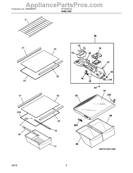 The Crisper Pan Cover is an OEM part for Frigidaire refrigerators. It serves as the shelf that sits above the crisper drawers and supports various items while providing a lid to help maintain the humidity levels necessary to keep fruits and vegetables fresh longer. This cover typically is only the frame and does not include the glass.