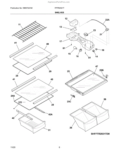 Parts for Frigidaire FFTR2021TB8: Shelves Parts
