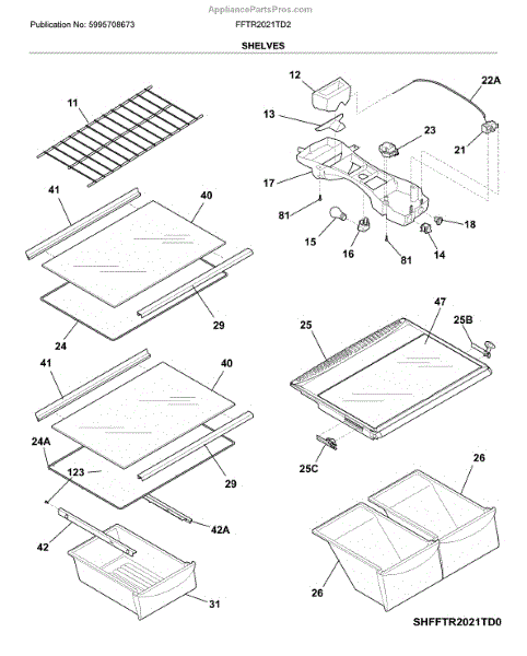 Parts for Frigidaire FFTR2021TD2: Shelves Parts