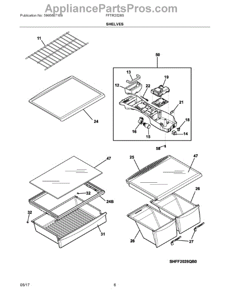 The Crisper Pan Cover is an OEM part for Frigidaire refrigerators. It serves as the shelf that sits above the crisper drawers and supports various items while providing a lid to help maintain the humidity levels necessary to keep fruits and vegetables fresh longer. This cover typically is only the frame and does not include the glass.