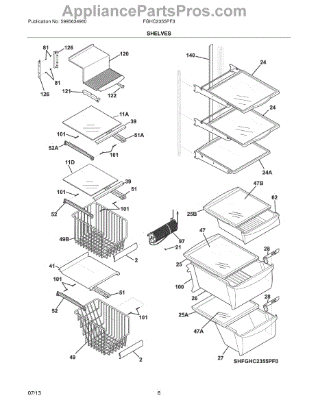 Replace a cracked, chipped, or stained spill-safe glass shelf in your side-by-side refrigerator. Restores storage space and helps contain spills.