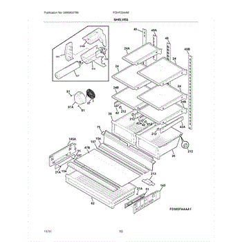 Protective shield component for refrigerator interior. Replaces damaged, cracked, or missing shields. Installs to guard internal components.