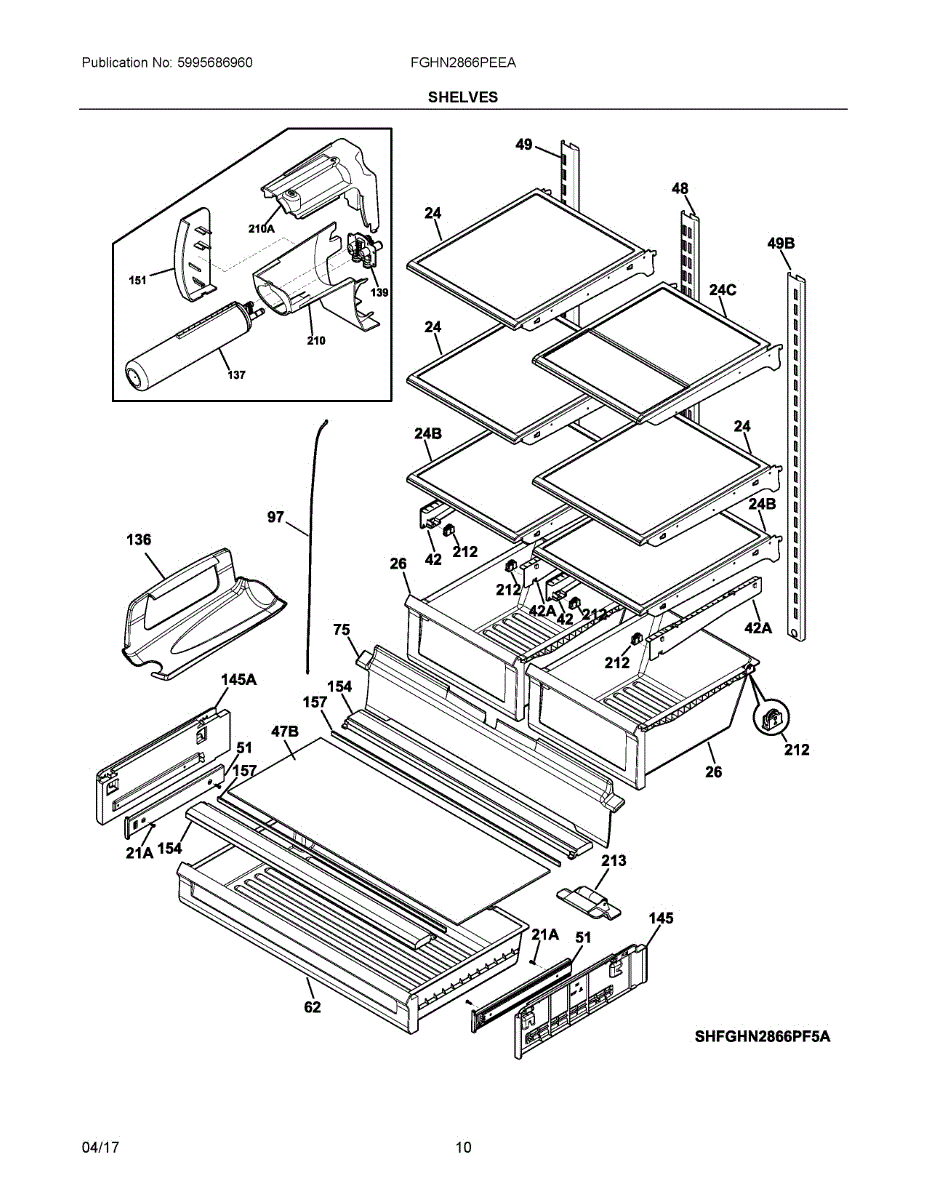 Replace your refrigerator's cracked, broken, or missing shelf. This shelf installs inside the fresh food compartment to organize and support food items.