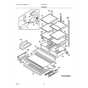 Protective shield component for refrigerator interior. Replaces damaged, cracked, or missing shields. Installs to guard internal components.