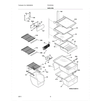 This shelf and trim assembly replaces a damaged or worn refrigerator shelf trim to restore a secure shelf edge and improve storage stability. It provides the finished trim piece that retains items and keeps the shelf seated correctly. What it does:
